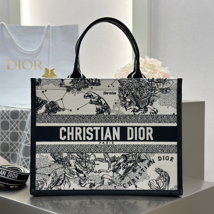 • 디올 미디엄 북 토트백 조디악 자수 라떼 블랙