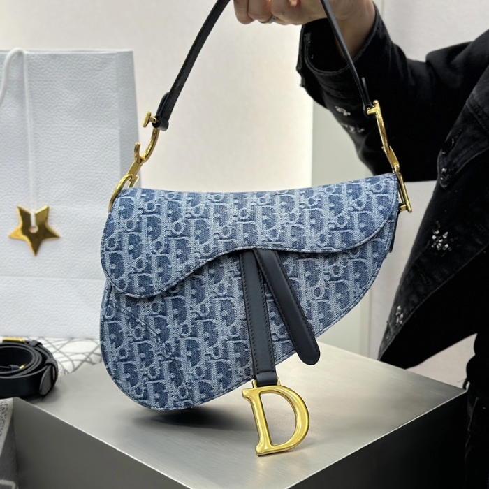 • 디올 새들 스트랩 백 데님 오블리크 자카드 블루