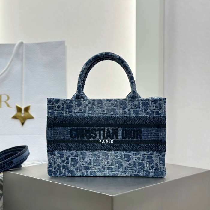 • 디올 미니 블루 데님 오블리크 북 토트백