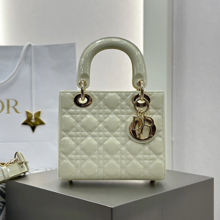 • 디올 스몰 레이디백 페이턴트 까나쥬 라떼