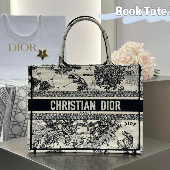 • 디올 미디엄 북 토트백 Toile de Jouy Zodiac 자수 라떼 블랙
