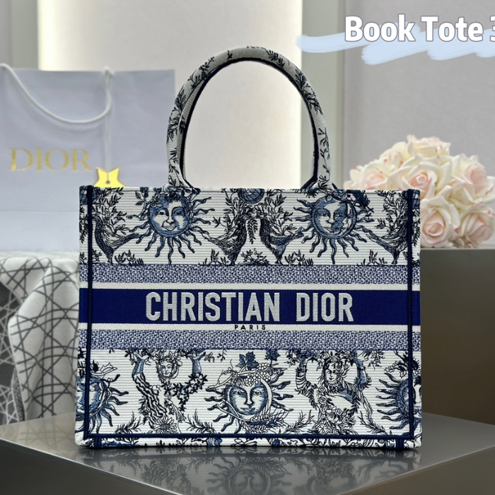 • 디올 미디엄 북 토트백 화이트 네이비 블루 쏠레이