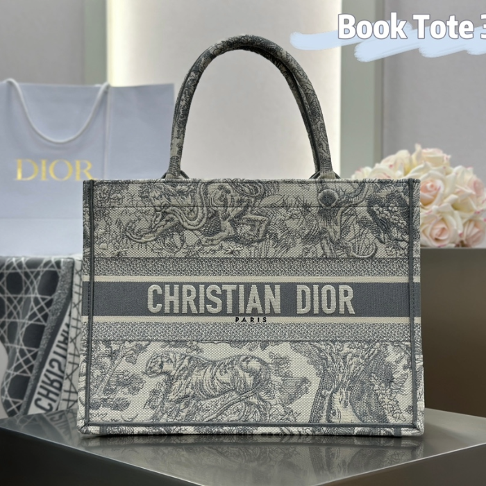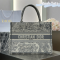 • 디올 미디엄 북 토트백 그레이 트왈 드 주이 자수