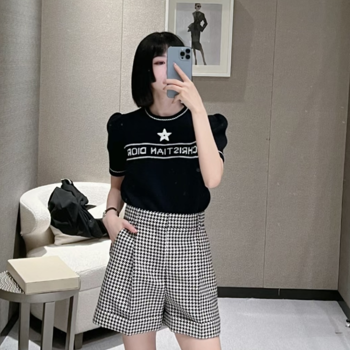 디올 숏슬리브 스웨터 캐시미어 울 니트 네이비 > 여성의류