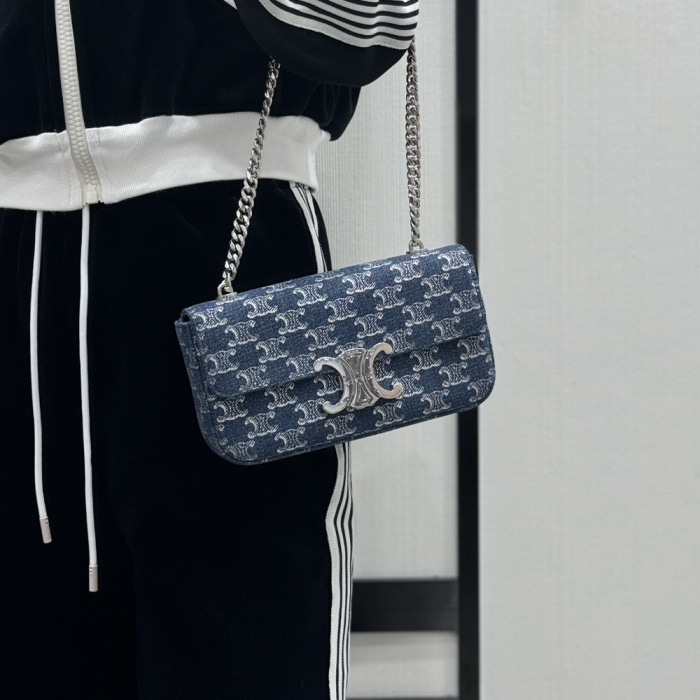 • 셀린느 체인 숄더백 클로드 데님 트리옹프 올오버 데님 실버