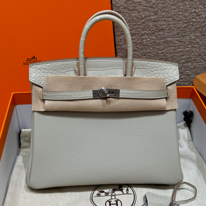 • 올수공 에르메스 버킨 25 80/Girs Perle 토고 & 악어 가죽 실버 하드웨어