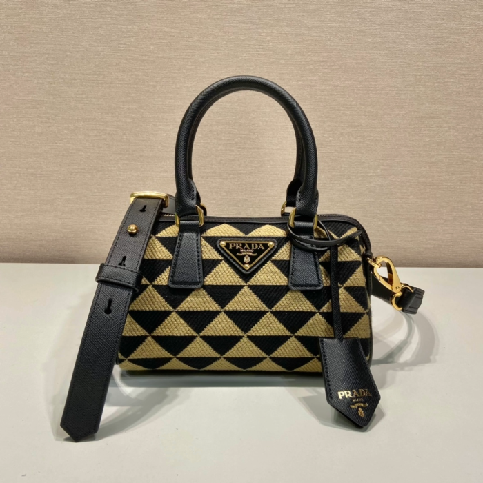 프라다 심볼 자수 패브릭 탑 핸들백 블랙/베이지 요약정보 및 구매