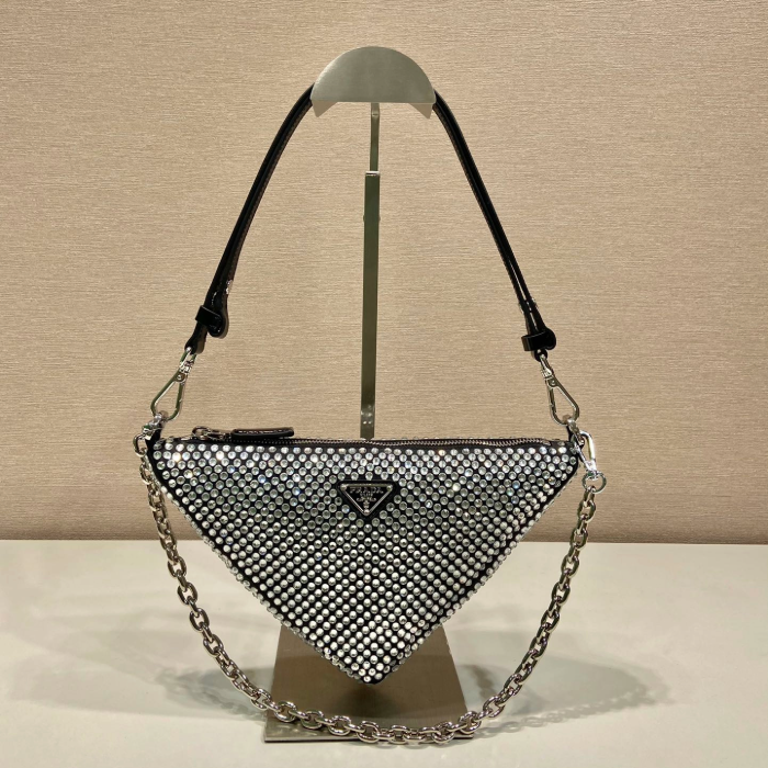 • 프라다 트라이앵글 쥬얼리 숄더백 실버