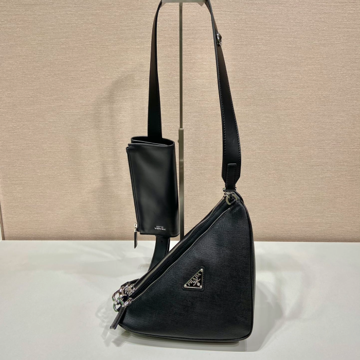• 프라다 트라이앵글 사피아노 레더 디태처블 파우치 더블 숄더백 블랙