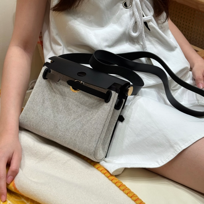 • 올수공 에르메스 에르백 미니 르투르네 H 바이킹 캔버스 헌터 카우하이드 & 골드 하드웨어 에크류 누아