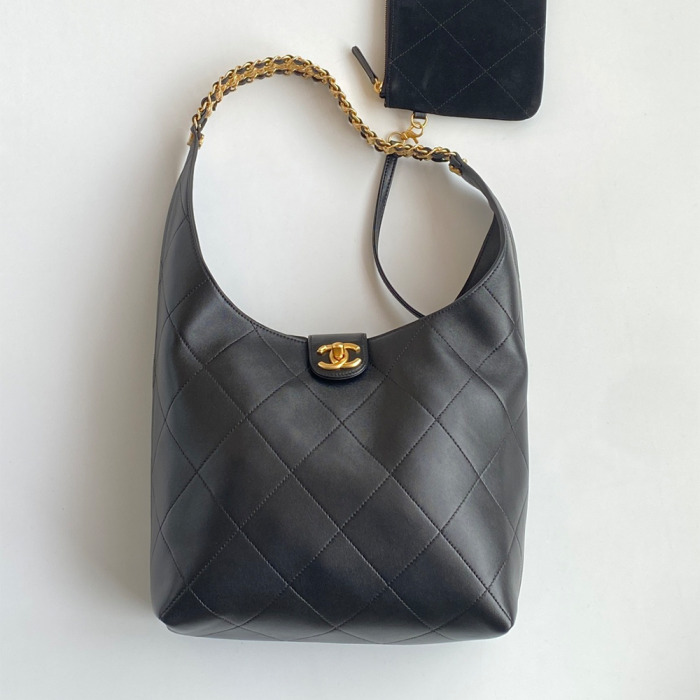 • 샤넬 25SS 라지 호보 백 램스킨, 골드 메탈