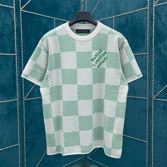 루이비통 화이트 그린 다미에 슬리브 크루넥 니트 반팔 > 남성의류