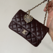 • 샤넬 25SS 미니 하트 팬던트 플랩백 브라운 금장