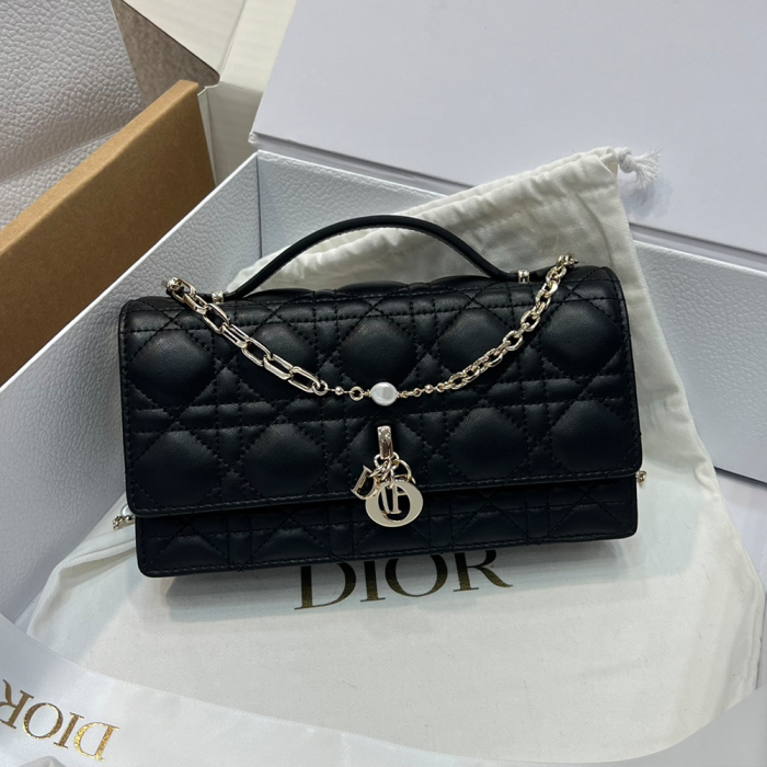 • 디올 미스 디올 미니 탑 핸들백 블랙 까나쥬 램스킨
