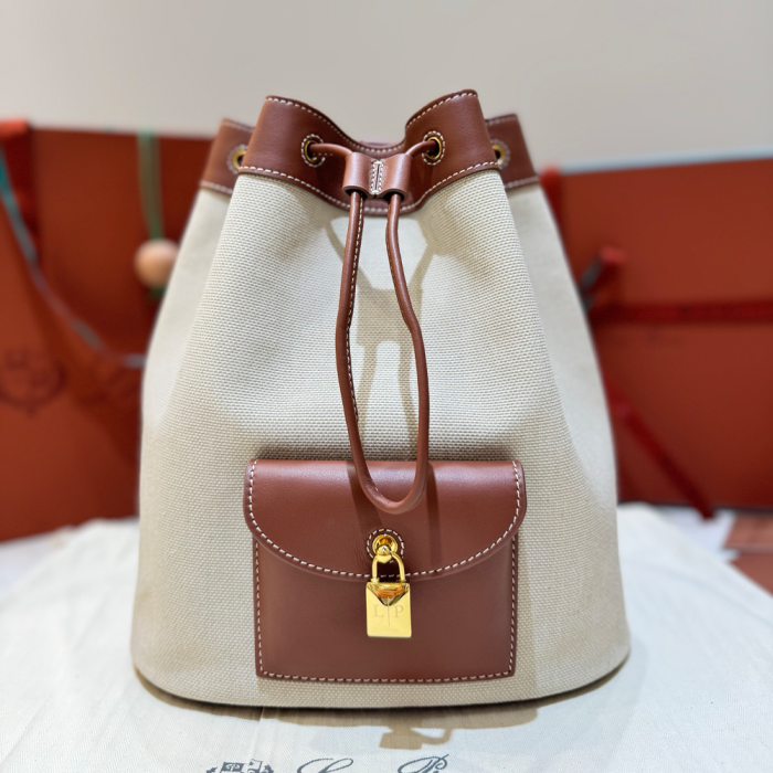 • 로로피아나 엑스트라 드로스트링 백팩 L27 캔버스 & 브라운 금장