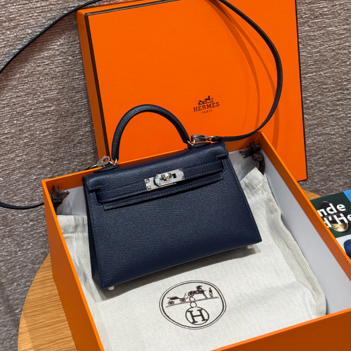 • 올수공 에르메스 미니 켈리 Blue saphir 쉐브르 가죽 실버 하드웨어