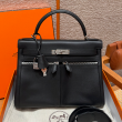 • 올수공 에르메스 켈리 라키스 noir 스위프트 가죽 실버 하드웨어